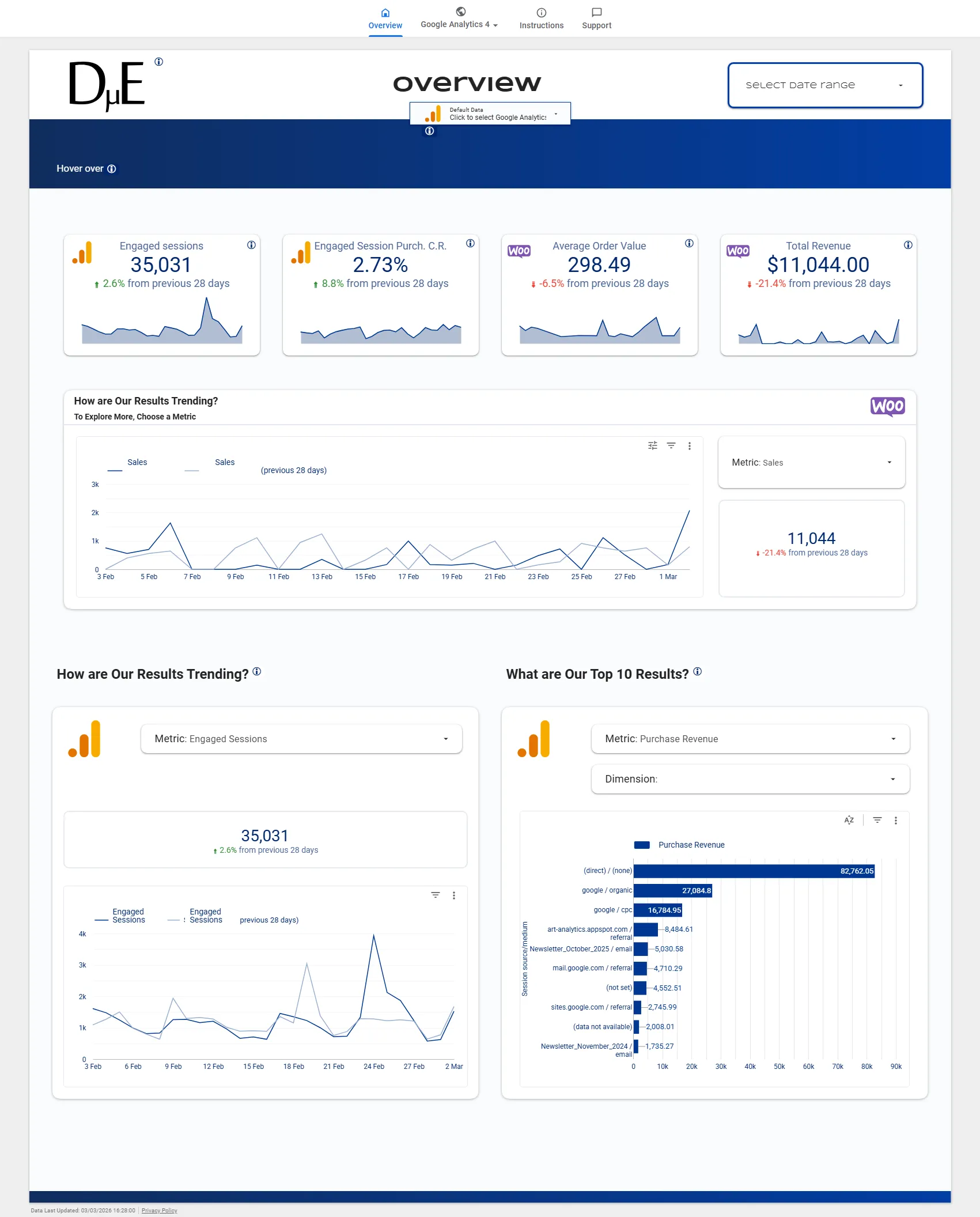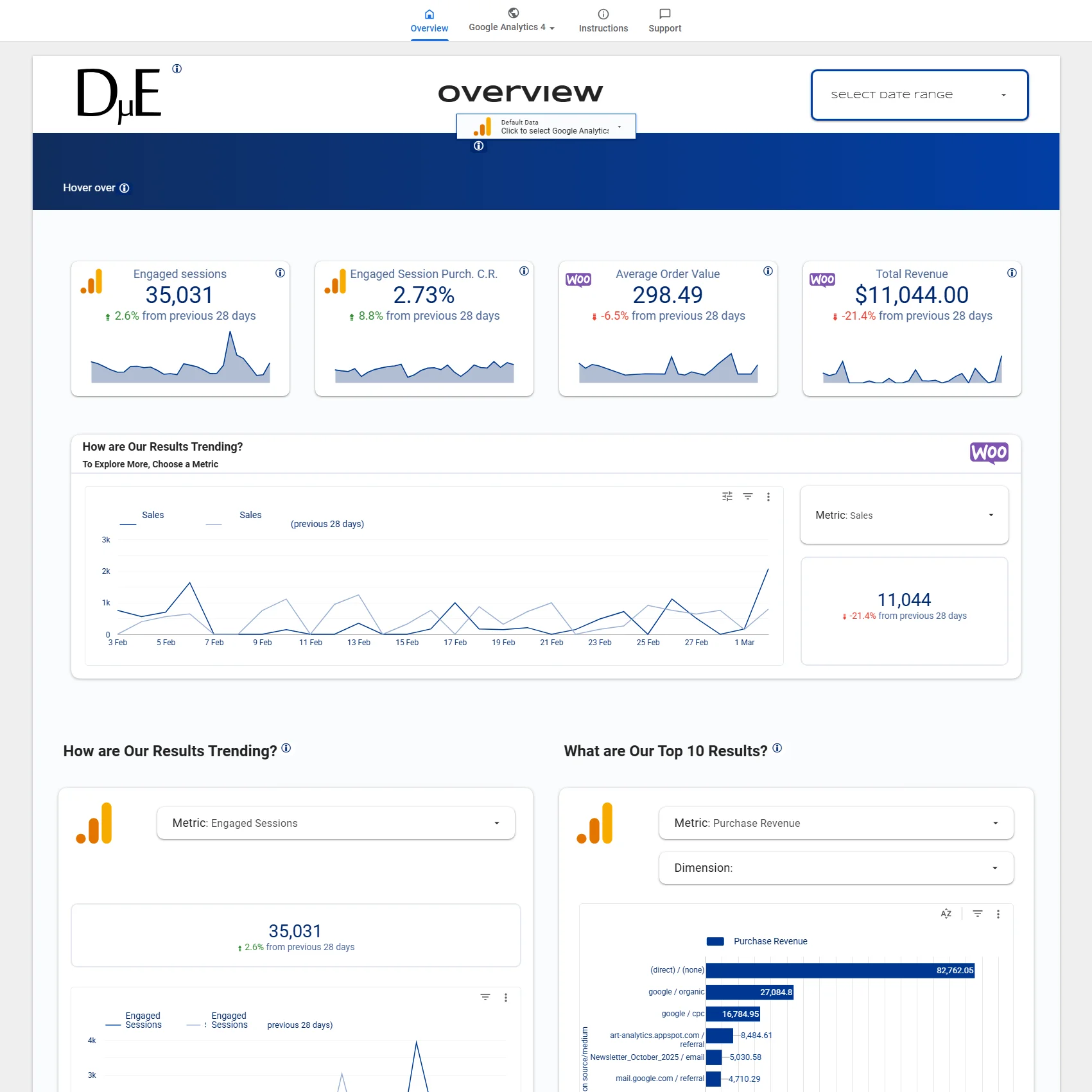 The WooCommerce Looker Studio Connector gets your WooCommerce data into Looker Studio, but in order to make data-driven decisions, an Actionable Dashboard needs to be created with the data.